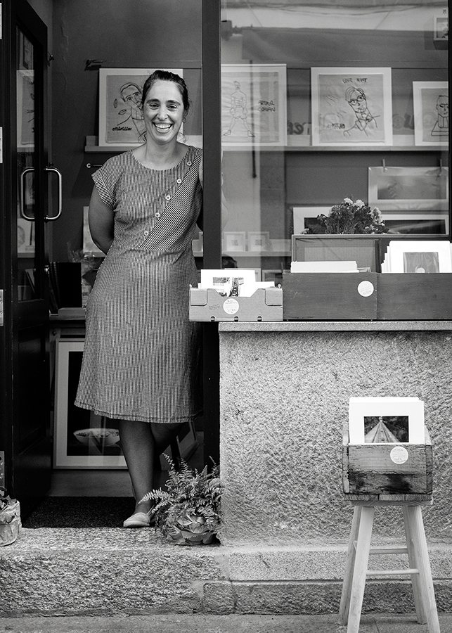 Amaia, que na familia ten vena artística, é consumidora de fotografía, de libros de fotografía… Sempre lle gustou. “Pola tenda ven moita xente nova, estou moi contenta! Cada vez entenden máis de fotografía e preguntan moito, sobre todo mozas. Interésanse por como se fan as imaxes. Os collagespuxéronse moi de moda, teño traballos de Lara Lars que ten os seus afeccionados… Preguntan polas fotos en branco e negro, as analóxicas, cada estilo ten o seu público. Hai turistas tamén. Darlle valor á arte é complicado… Hai un abuso de imaxes, todos sacamos fotos, entón valorar o traballo dos fotógrafos, resulta difícil… Pero se ti explicas a historia da fotografía, como foi sacada, a traxectoria do autor… A xente valórao. Teño público local. Fago moito envío. A xente regálaas! Tento que as persoas poidan coleccionar series a prezos accesibles”. Ten uns paquetiños sorpresa, que levan unha fotografía dentro que descoñeces ata abrir o sobre na casa… A maxia das fotos.