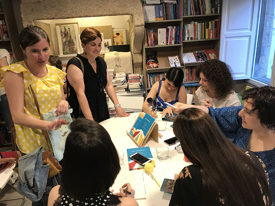 A libraría de mulleres Lila de Lilith acolleu a presentación do libro ‘A cuatro voces’, unha obra que recompila relatos curtos das autoras Silvana Lameiro Micciche, Maria João Matos, María Pérez Prol e Ruth Ríos, acompañados polas ilustracións de Jun Fernández. O acto foi conducido pola directora da revista Pincha, Rebeca Munín.