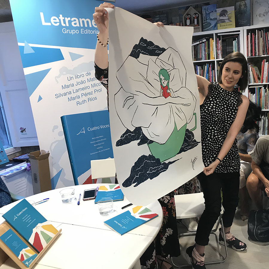 “Para min este libro foi un reto xa que supuxo traballar con catro voces creativas diferentes, pero agradezo moito a liberdade que me brindaron en todo momento”, comenta a ilustradora.