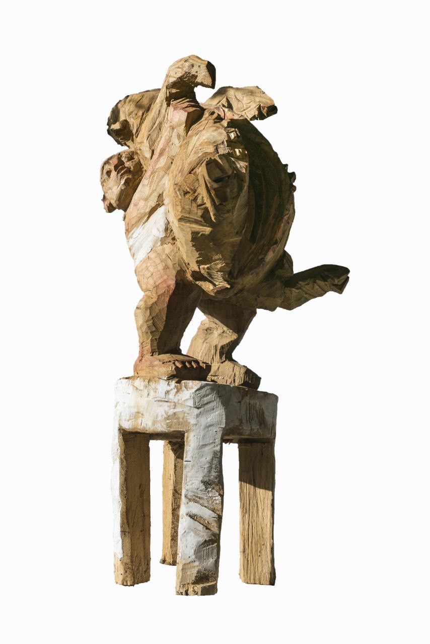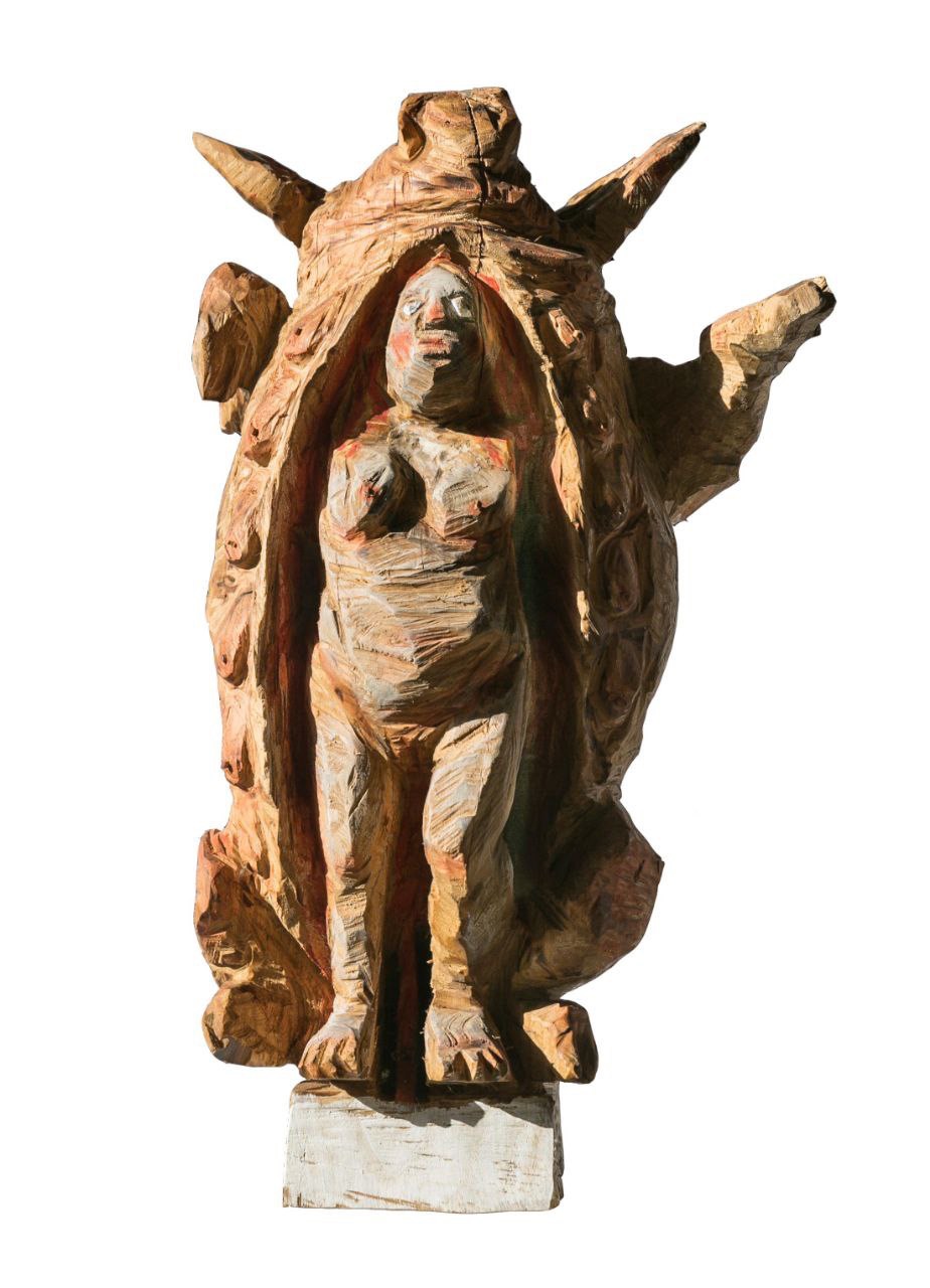 Un gran respecto polo material, pero tamén pola tradición cultural de Galicia. Este artista padronés conta con un repertorio iconográfico inspirado na mitoloxía, lendas e rituais ancestrais así como experiencias vitais. Preséntansenos Minotauros, porcos antropomórficos, mulleres saíndo das entrañas do animal ou acios de peitos. Rostros inxenuos cun acabado rudo e sutil policromía no que o material, técnica e a figura exprésanse dunha forma equilibrada.