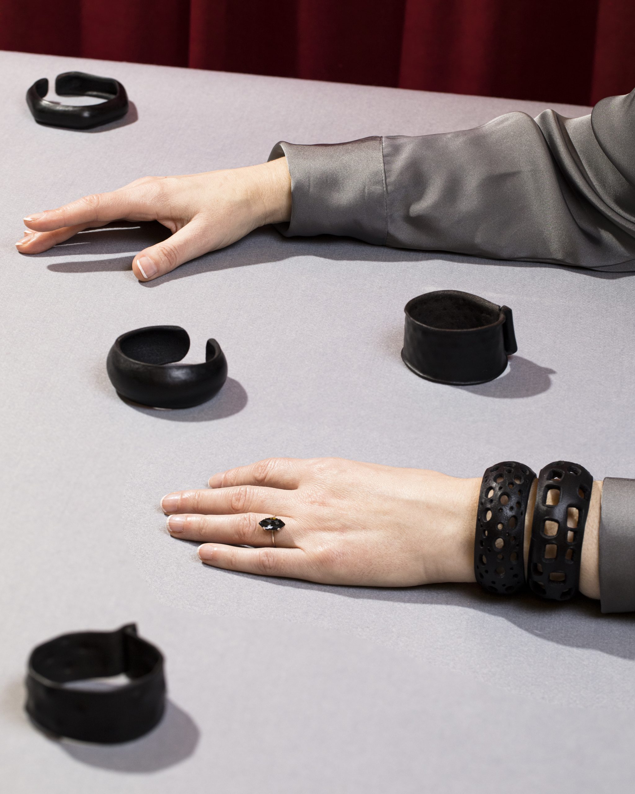 Os brazaletes de coiro da Colección Pétreas de Jatafarta (Santiago de Compostela) nacen da experimentación cunha antiga técnica coñecida como “cuir bouilli” (coiro fervido), que describe o proceso de endurecemento e de modelado da pel mediante a aplicación de calor e de humidade. Deste xeito, o coiro engrósase e vólvese ríxido e seméllase en dureza e textura a materiais como a cerámica ou a madeira. A colección inclúe pulseiras perforadas, con textura, lisas, hexagonais, etc.