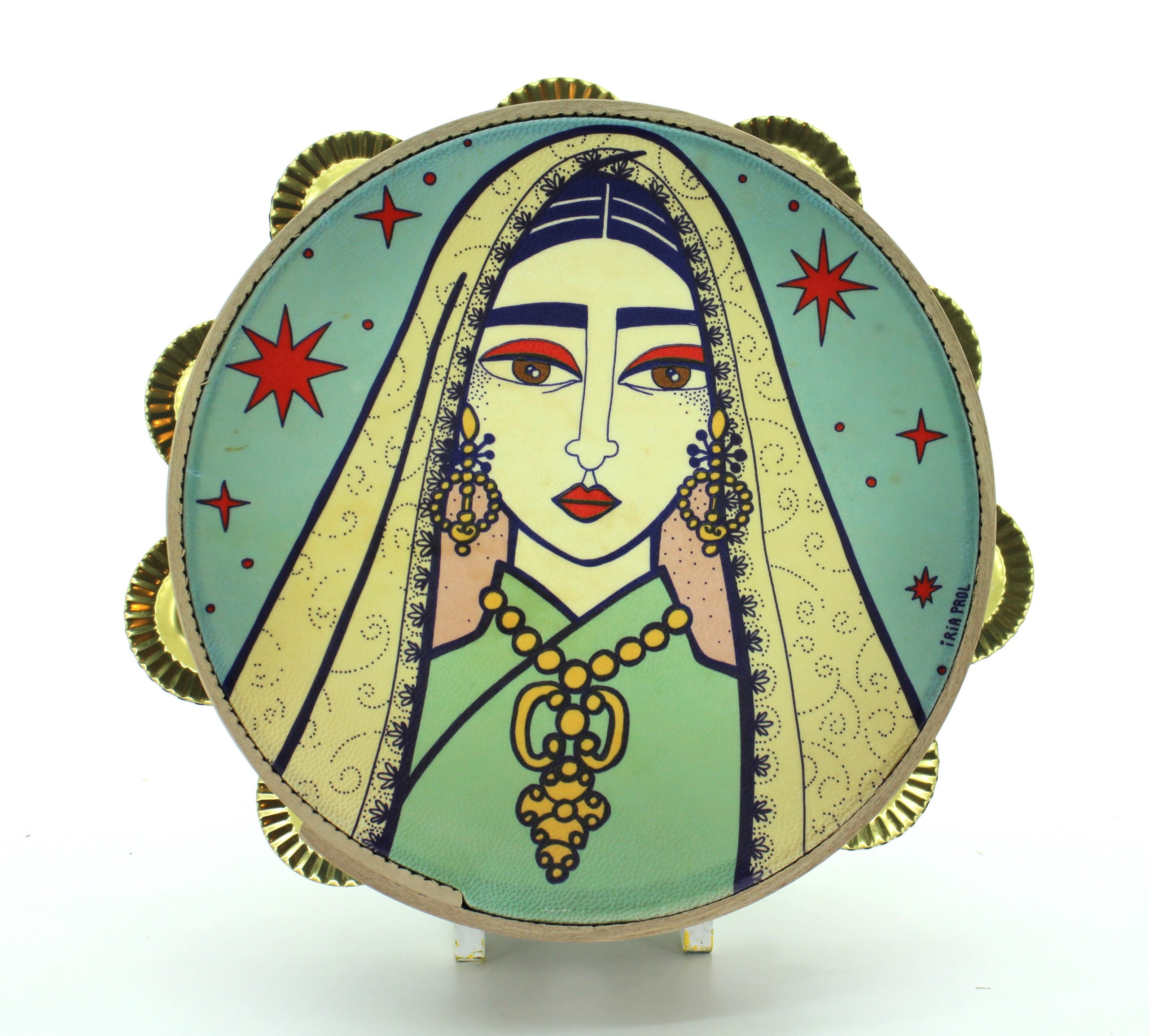O Obradoiro Sanín Percusión Tradicional (Santiago de Compostela) conta cunha colección de pandeiretas de serie limitada e numerada, ilustradas por 12 artistas galegas especializadas en diferentes ámbitos: muralismo, serigrafía, moda, literatura, produto, publicidade. Todas as pandeiretas están elaboradas en madeira de nogueira do País, con nove pares de ferreñas douradas e de cada ilustración só hai cinco copias. Esta pandeireta está ilustrada por Iria Prol, ilustradora, artista mural e deseñadora gráfica.