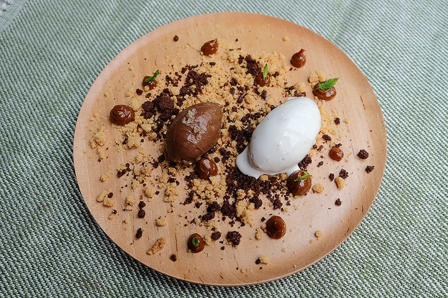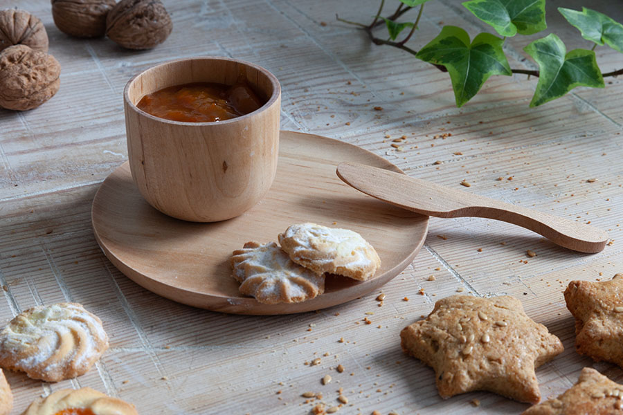 Con ese obxectivo de preparar pratos que se puideran usar para calquera cousa como se usan os de cerámica, fabricamos pezas moi finas con madeira de bidueiro e puxémoslle cor. Vernizamos cun acabado apto para o uso alimentario, de maneira que os nosos pratos se poden lavar como calquera outro. Despois, tamén se nos ocorreron outro tipo de utensilios como é o quebranoces, que chama moito a atención, as espátulas ou as palliñas reutilizables de madeira de sabugueiro.