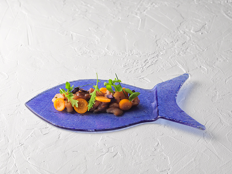Creamos pezas particulares para restaurantes segundo o que precisan, e como fabricamos peza a peza todas son diferentes. Adaptámonos ao que piden, por exemplo facendo formas especiais para colocar o garfo ou para presentar un menú de determinada maneira. Pero non só lles facemos vaixelas, tamén decoración en vidro como repousa cubertos, centros de mesa, floreiros ou identificadores para as mesas.
