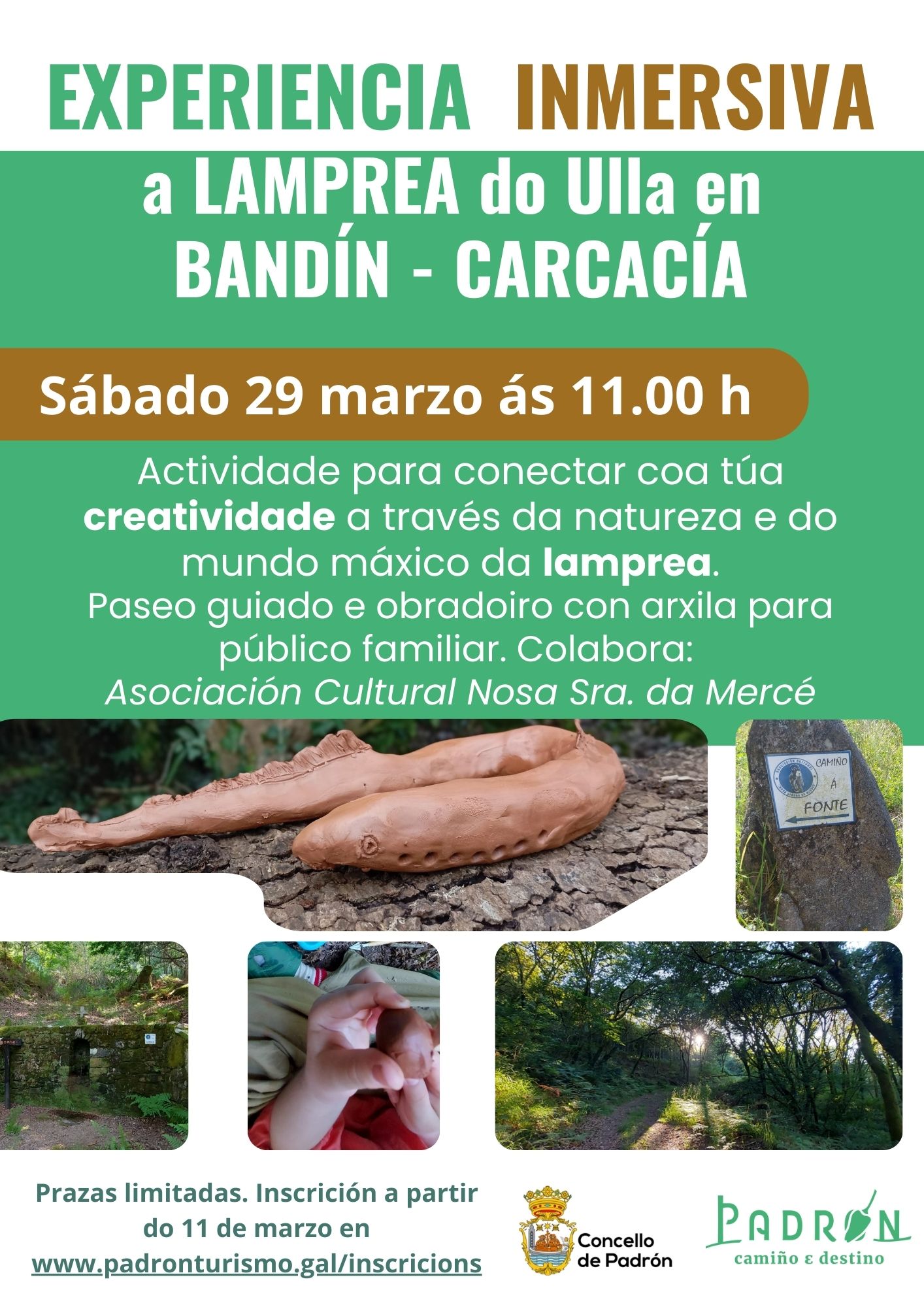 As prazas para estas actividades son limitadas, polo que será necesaria inscrición previa a partir do martes 11 de marzo a través da web www.padronturismo.gal/inscricions.