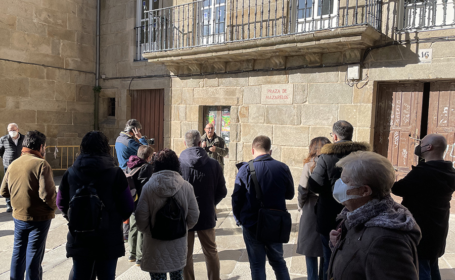 Despois, o roteiro continuou na Praza da Universidade, no antigo Restaurante El Asesino, onde o filósofo Antón Baamonde describiu a importancia dos faladoiros que había nos locais de hostalería composteláns en tempos de crise.