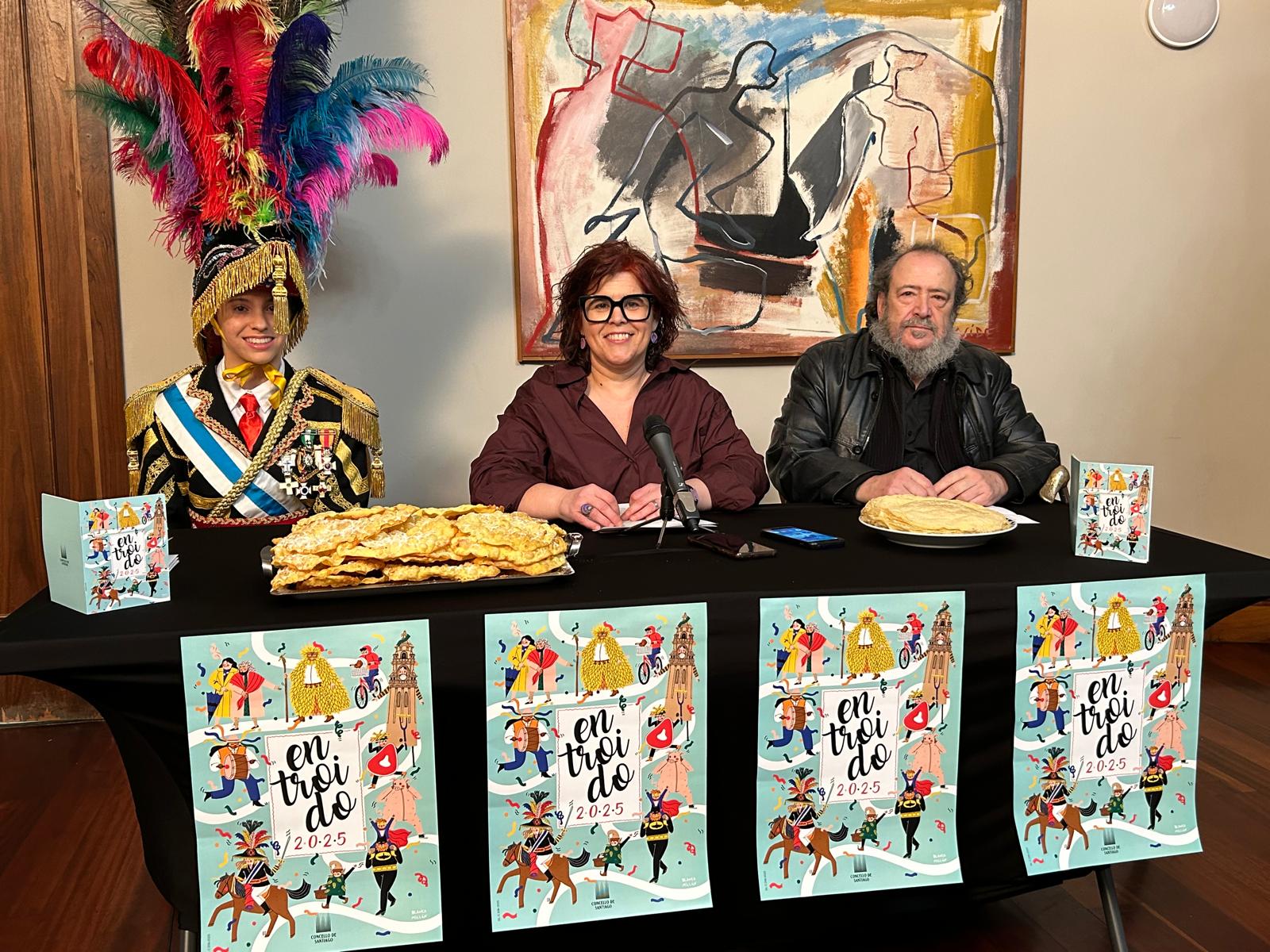 Este ano o deseño e a idea orixinal son obra da debuxante, pintora e ilustradora Blanca Rodríguez Millán, que ten unha fonda vinculación con Compostela. As ilustracións reflicten a identidade compostelá a través de figuras simbólicas do noso concello como os/as xenerais, as Marías ou a Berenguela que se suman con humor e atrevemento ao espírito do Entroido.
