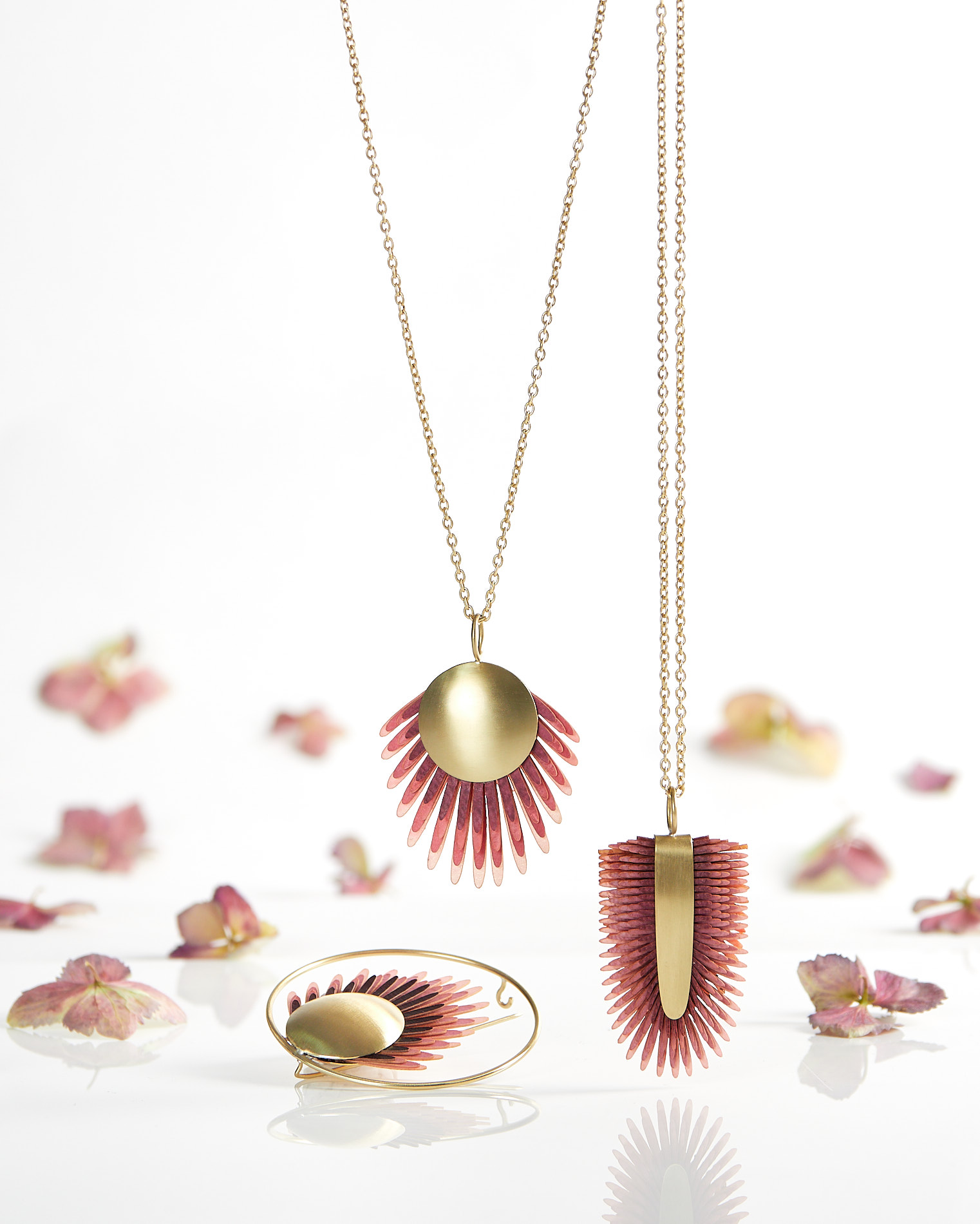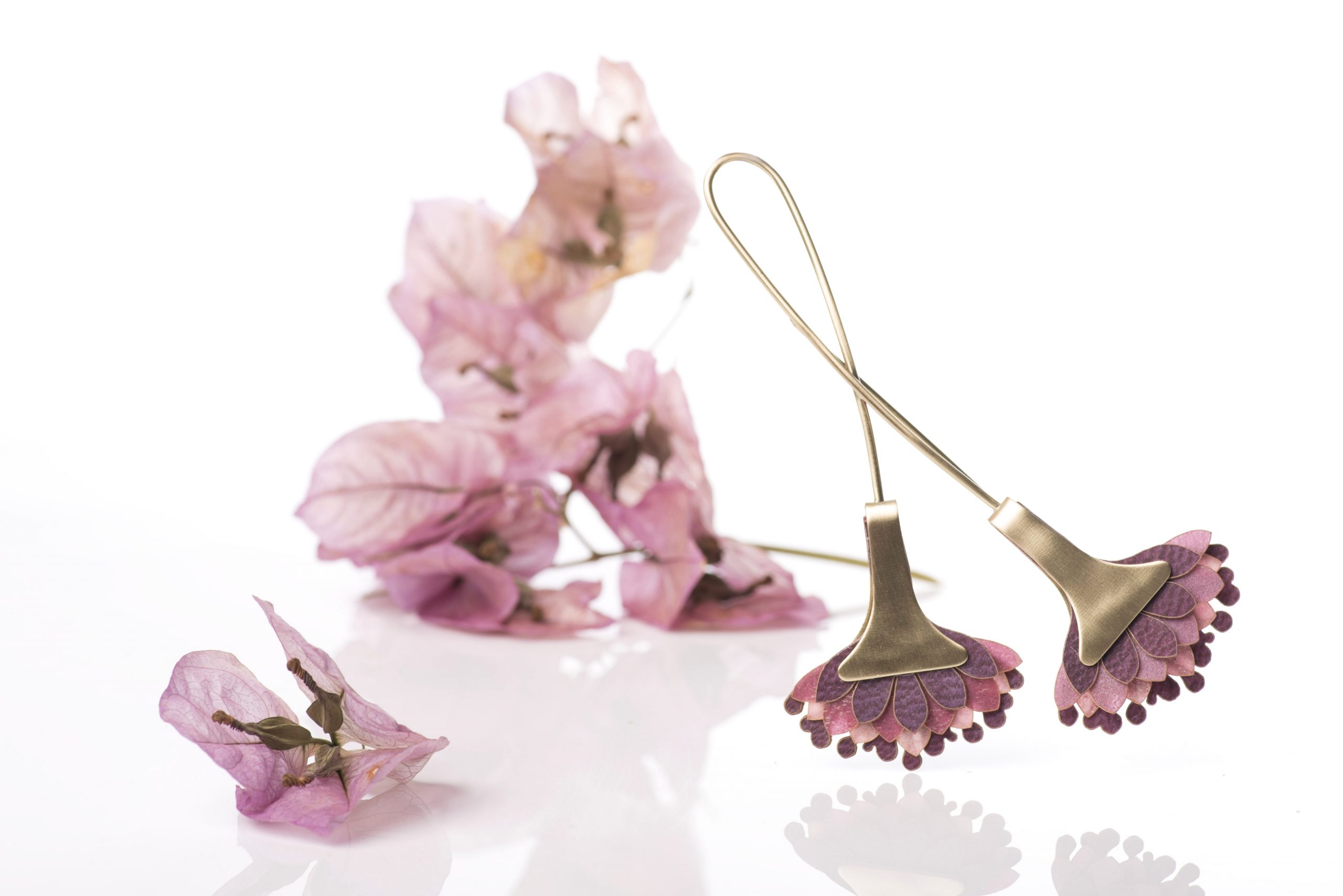 As súas pezas destacan por combinar o metal con materiais pouco usuais na bixutería como son os plásticos, feltro, pel, metacrilato... e agora especialmente con pergameo.